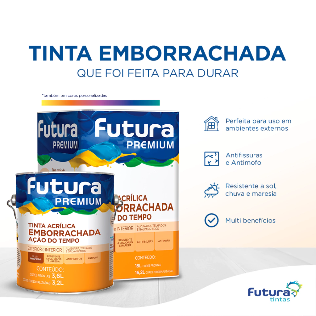 3,6L: até 15m² (cores prontas) ou 13m² (cores personalizadas)